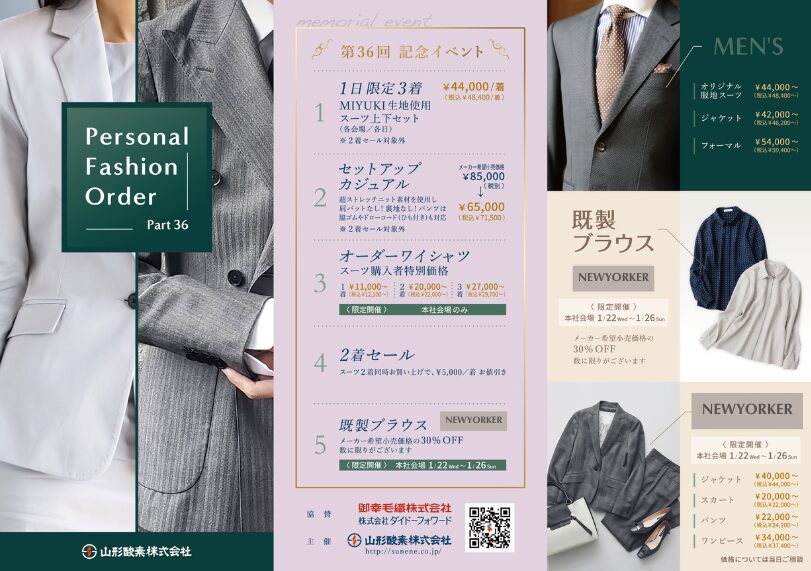 今年も36回目のメンズ・レディースオーダーフェアを開催する運びとなりました。