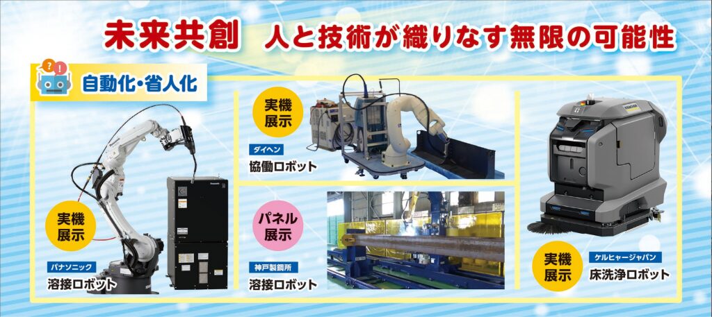 | 内 容 | 溶接/床洗浄/協働ロボットの 実機・パネル展示 溶接機器・工具・安全具等の販売 |